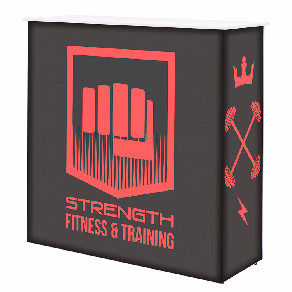 Accentuate your Lumere Light Wall® with the illuminating Lumere Counter (Backlit)! A bright new counter design, internal LED ladder lights will make your graphics pop! Choose 3 custom Dye Sub Backlit SEG graphics: 1 front, 1 back and 2 ends caps. Includes carry bag.